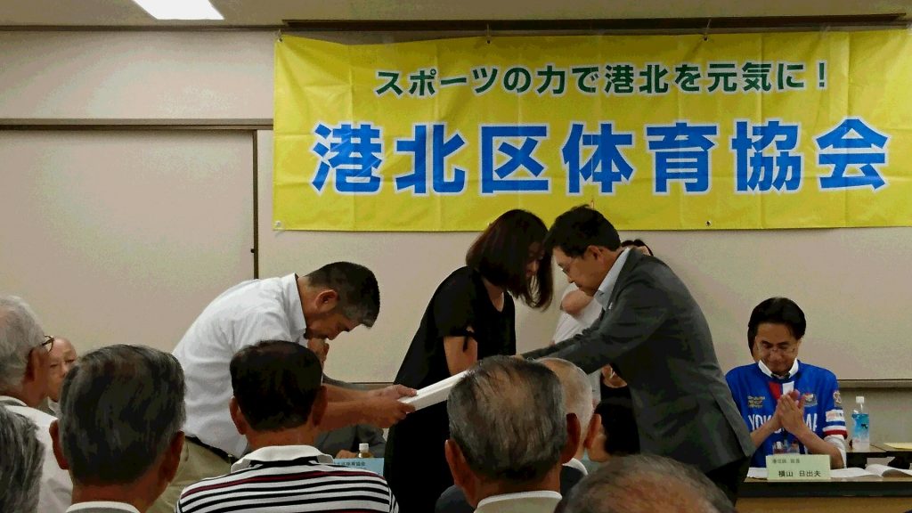 2017-06-11 / 最終更新日時 : 2017-06-11 HP担当・山田 お知らせ 横浜スポーツ普及功労賞受賞 平成29年6月2日に開催された港北区体育協会総会において、当連盟の白水豊泰理事長が平成28年度横浜スポーツ普及功労賞を受賞しましたのでここにお知らせします。 FacebookXBlueskyHatenaCopy